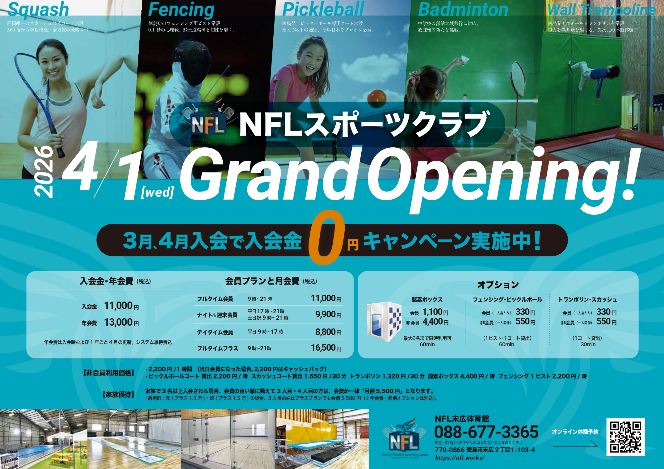 徳島市から全国・世界に羽ばたく人を応援する NFL末広体育館 の各種メニュー