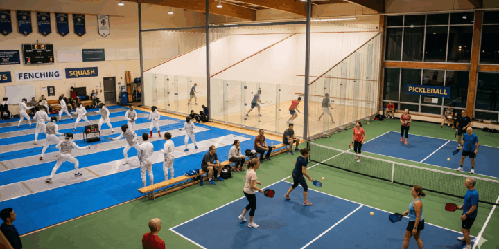 最初はフェンシング、スカッシュ、ピックルボールを始動します。